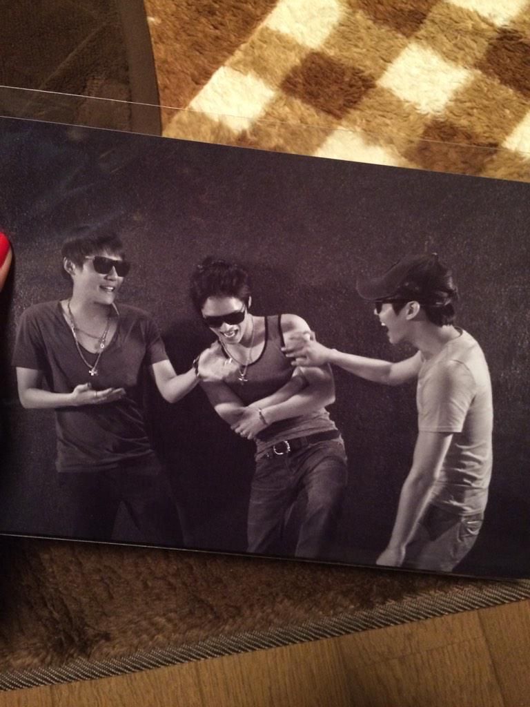 [INFO] Uma fã sortuda recebeu uma foto dos JYJ enquanto filmavam o 3hree voice Ⅲ. Eles pareciam tão felizes juntos.^^ (via babyskymicky)