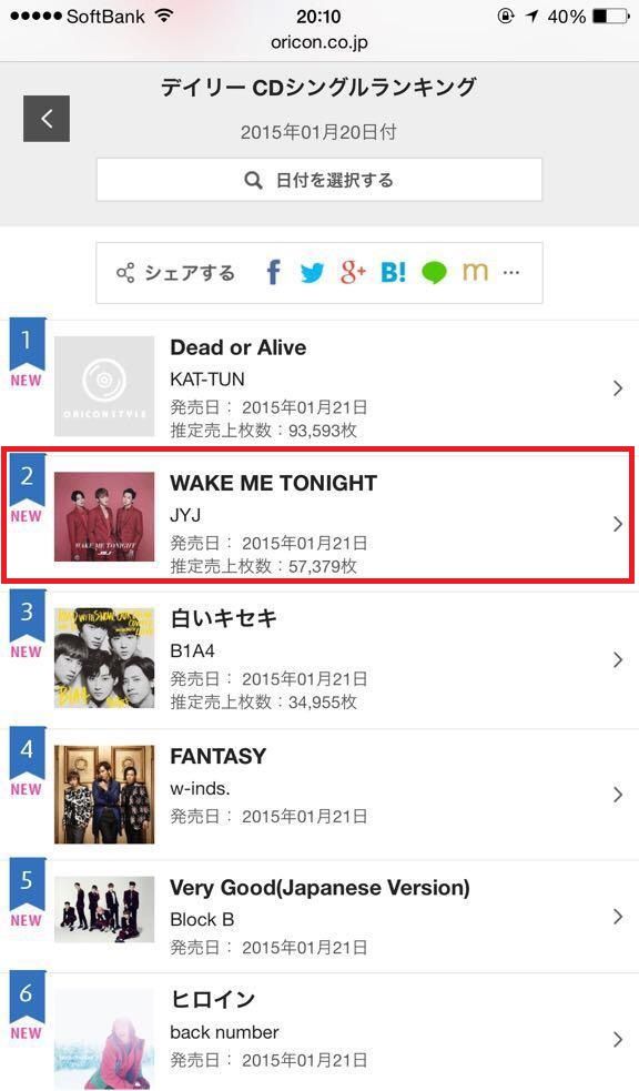Wake Me Tonight dos JYJ vendeu 57,379 copias e ficou em 2º lugar^^